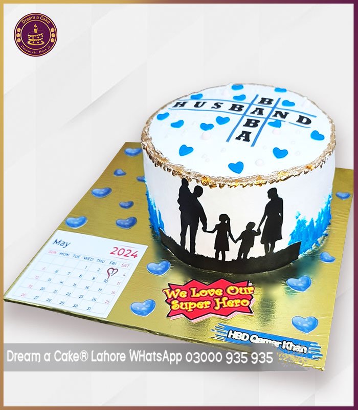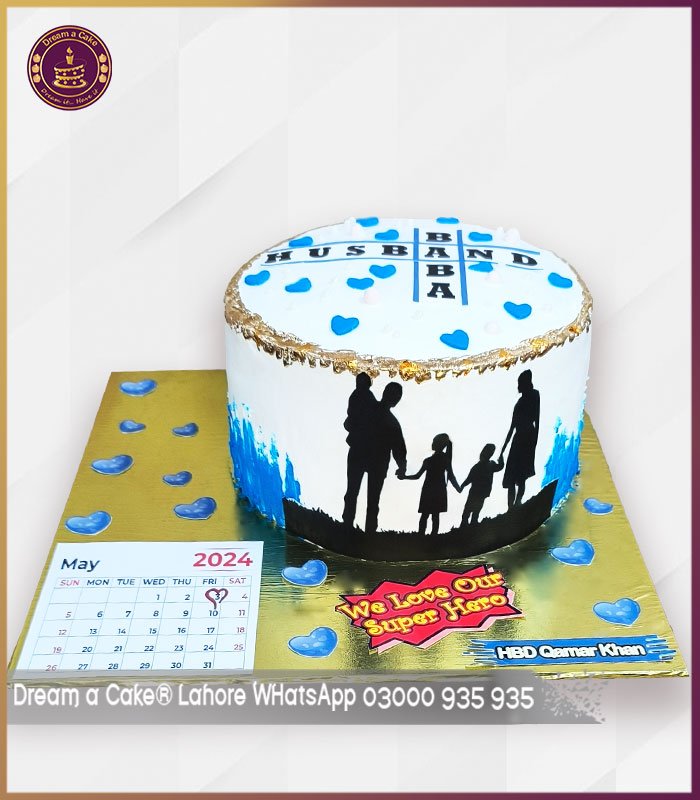 Customized Husband and Baba Theme Cake with Calendar in Lahore