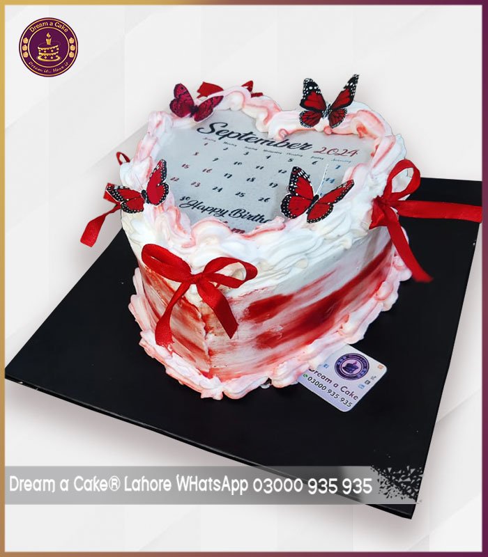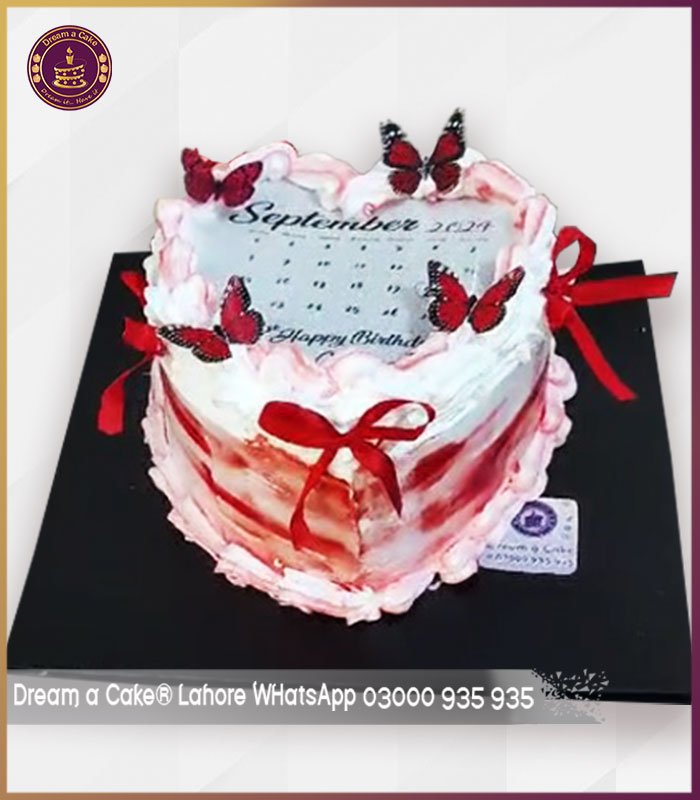 Calendar Fire Cake with Red Butterflies Theme in Lahore