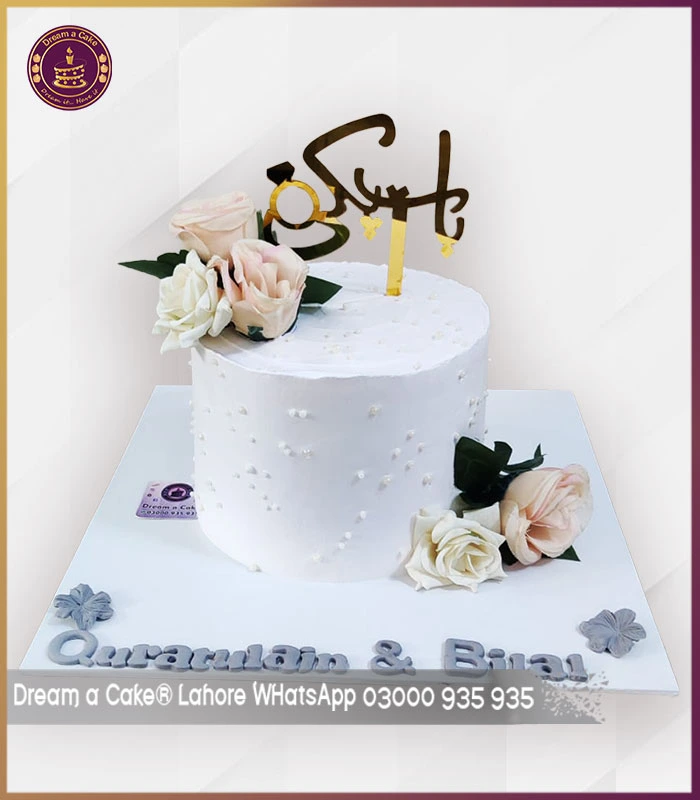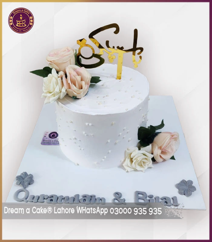 Classic Floral White Engagement Cake in Lahore