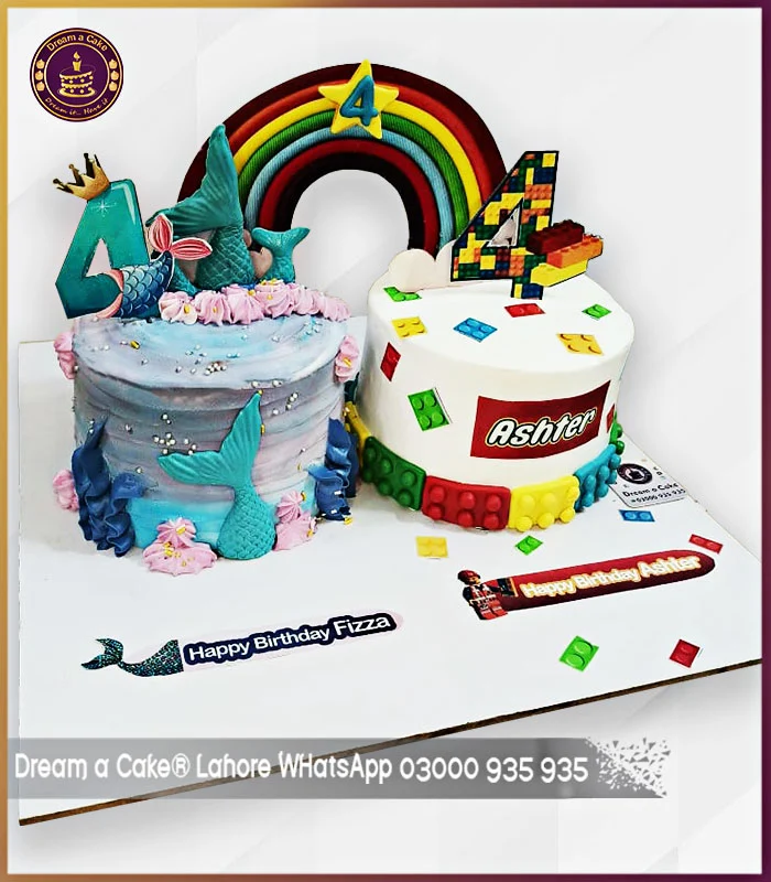 Double the fun with our Double Delight Mermaid Theme Cake and Lego Theme Cake, exclusively designed by Dream a Cake