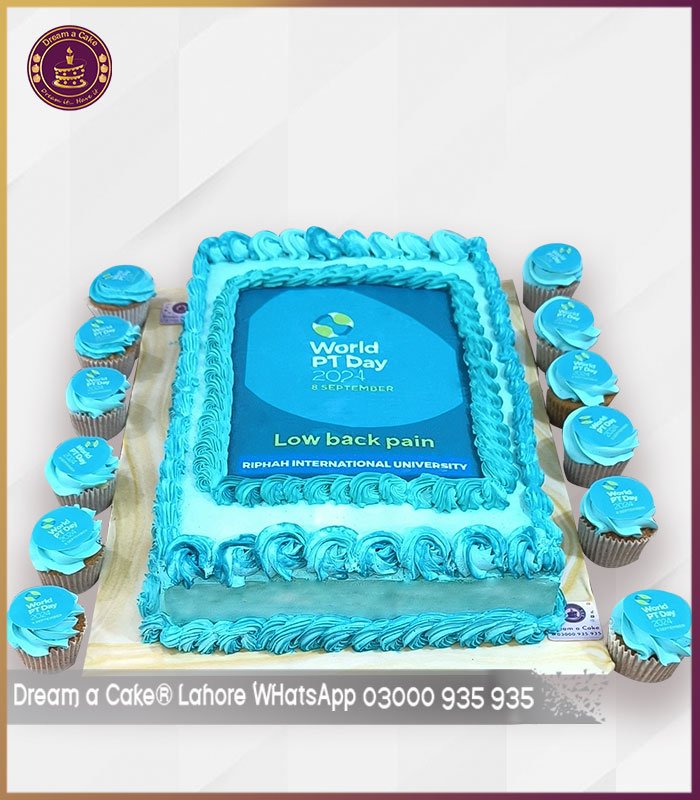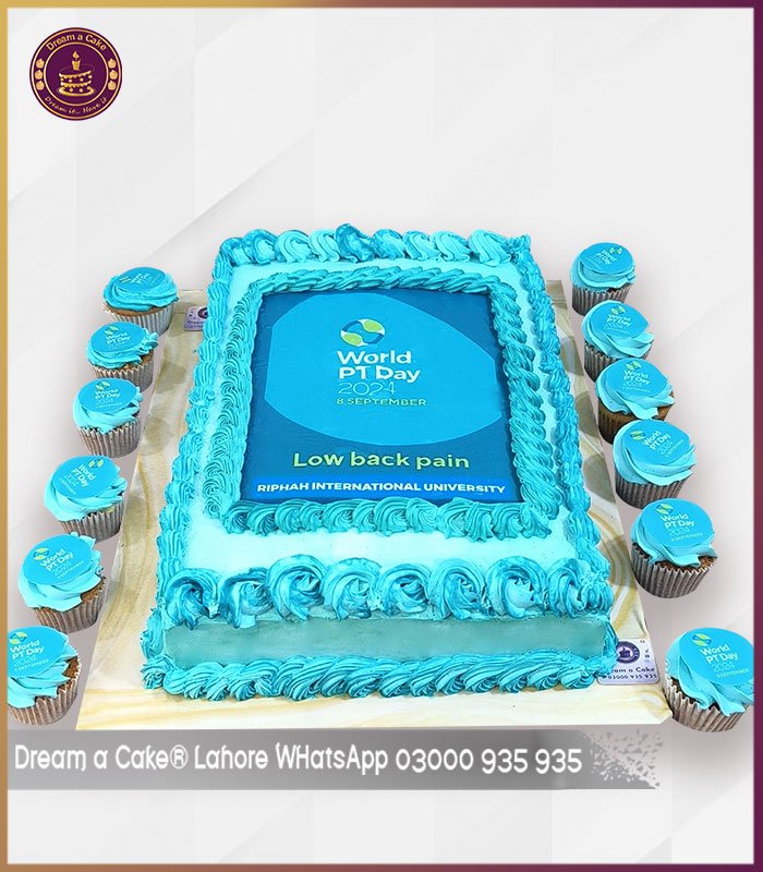 Customized Blue Theme Picture Cake with Cupcakes in Lahore