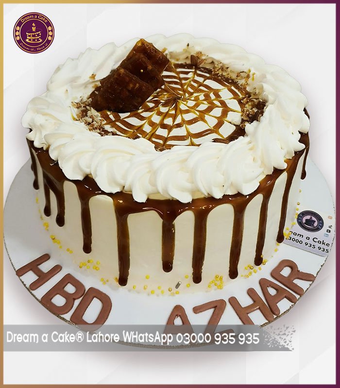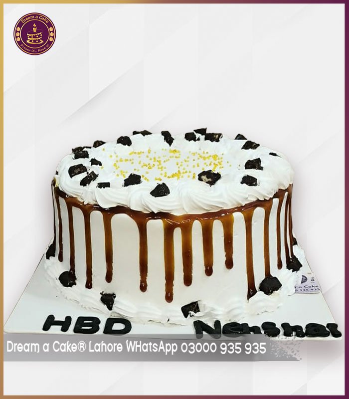 Satisfy your sweet cravings with our irresistible Caramel Crunch Cake, a perfect combination of smooth cream, rich caramel, and crunchy