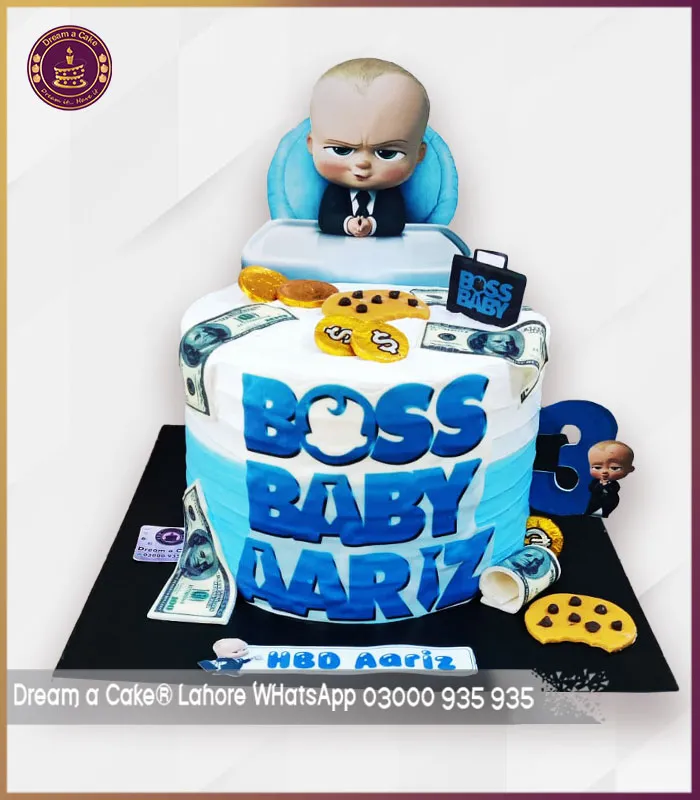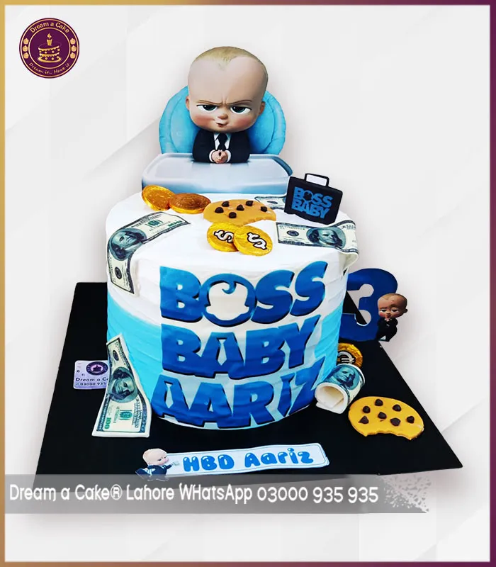 Custom Boss Baby Cake with Cookies & Cash Design in Lahore