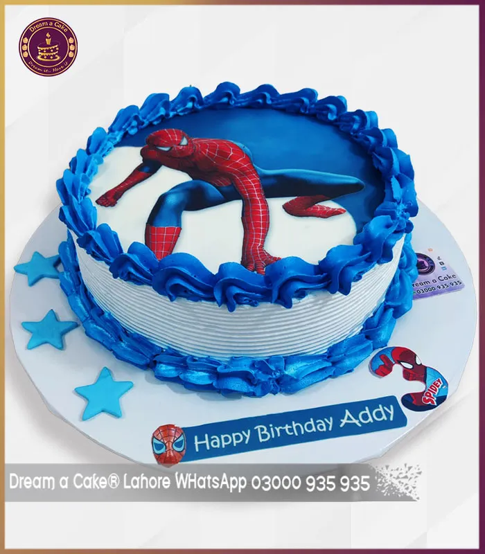 Bring the excitement of the Marvel world right to your celebration with our Spiderman Theme Picture Cake from Dream a Cake Lahore! Designed for every little superhero who dreams of saving the day, this cake features a detailed Spiderman edible image and a stunning 3D topper of Spiderman ready to fly into action. Perfectly baked with premium ingredients, it offers a tasty burst of flavor in every bite — soft, moist, and beautifully frosted to match the bold Spiderman theme.