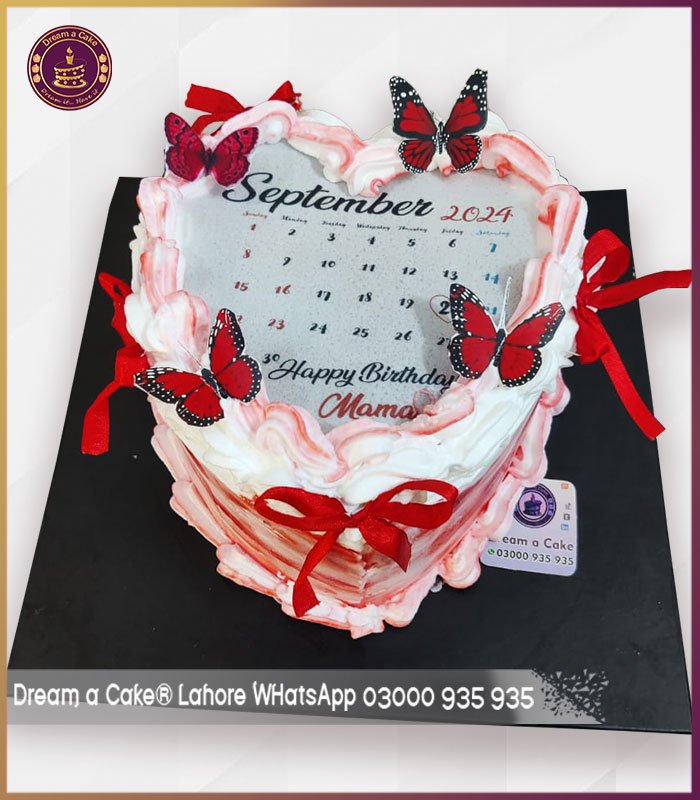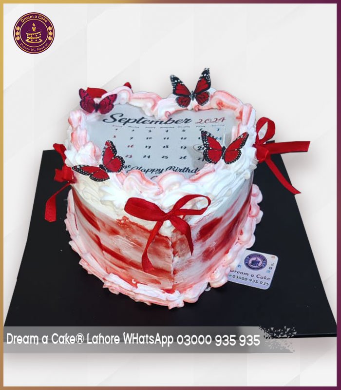 Perfect for birthdays, anniversaries, or milestone celebrations, this themed cake combines creativity with flavor. The calendar design makes it extra meaningful, allowing you to mark your most cherished dates in a sweet and unique way. The elegant red butterflies add charm, making this cake a centerpiece that reflects thoughtfulness and joy.