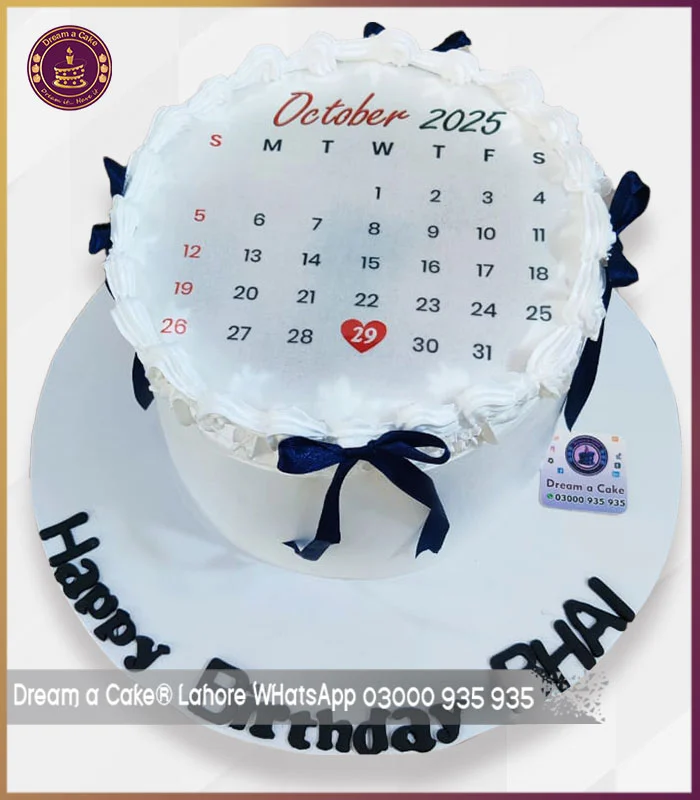 Make every special date unforgettable with our White Calendar Theme Cake with Blue Ribbons, exclusively crafted by Dream a Cake Lahore. This elegant creation features a pure white base that symbolizes new beginnings, beautifully wrapped with delicate blue ribbons to add a charming touch of celebration. Whether it’s a birthday, anniversary, milestone, or a surprise event, this unique calendar cake allows you to highlight your chosen date in the sweetest way possible!