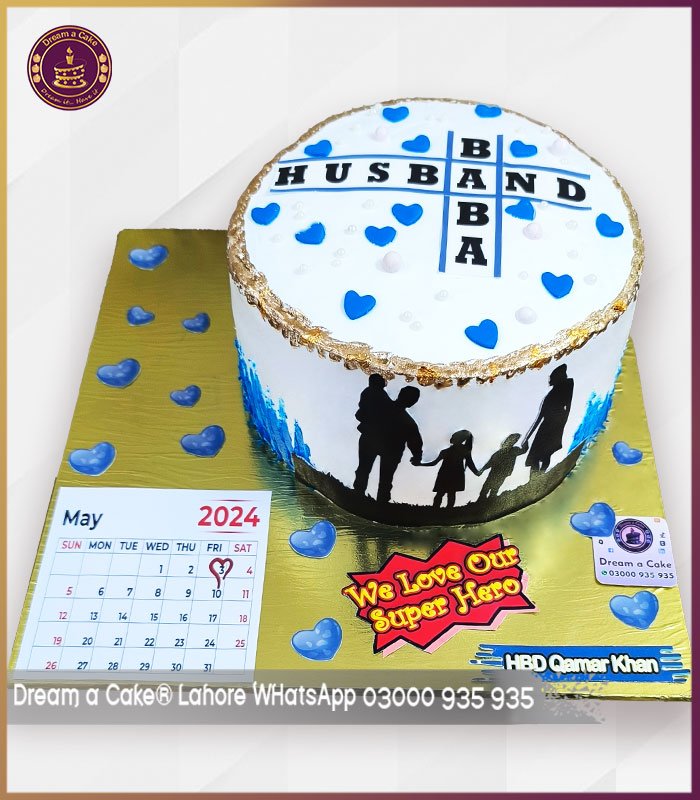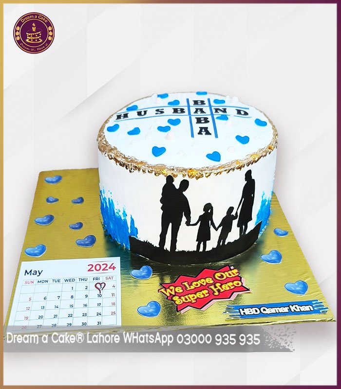 Customized Husband and Baba Theme Cake with Calendar in Lahore