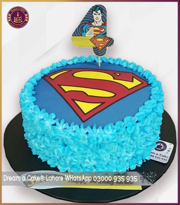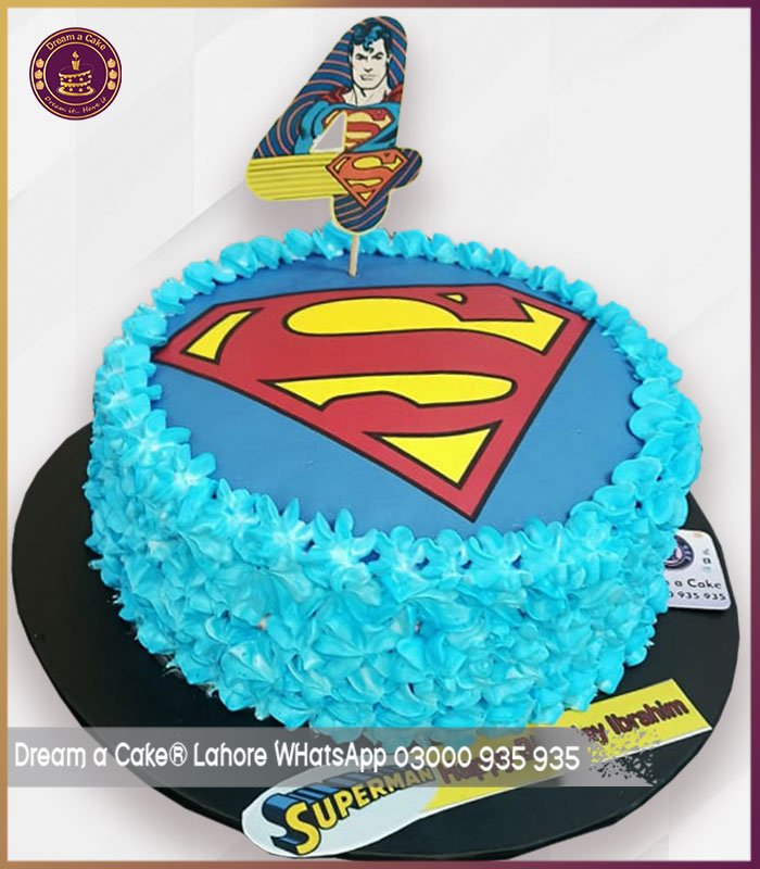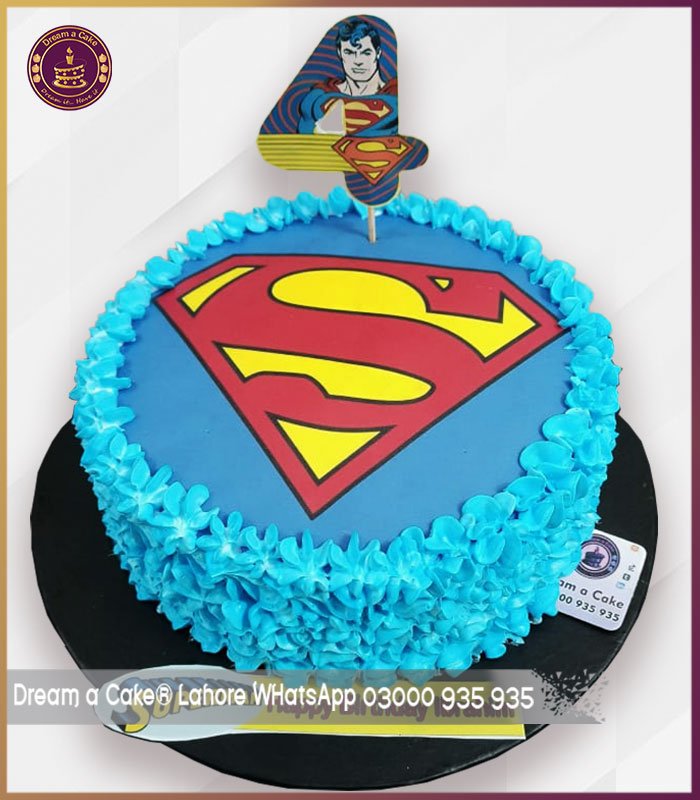 Bring the power of superheroes to your celebration with our Superman Theme Picture Cake, a perfect choice for kids and superhero fans alike. At Dream a Cake Lahore, we specialize in creating cakes that combine stunning visuals with delightful flavors, and this Superman-themed delight is no exception. Designed with a bold blue and red theme, this cake captures the true spirit of the Man of Steel, making it a showstopper for any birthday party.