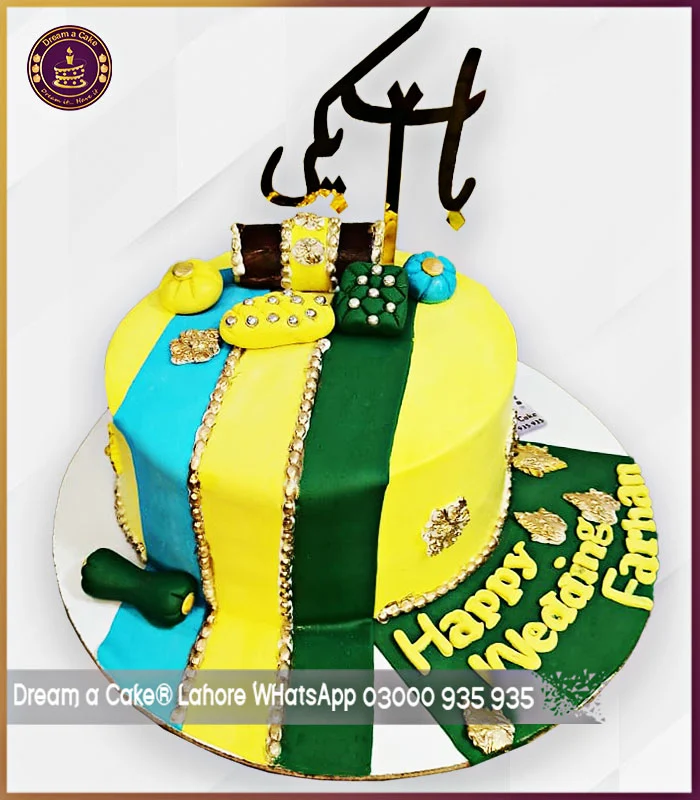 Celebrate the unbreakable bond with our “Eternal Knot Celebration Baat Pakki Cake. This tasty cake specially ddesigned by Dream a Cake Lahore, this masterpiece is specially made to make your Baat Pakki, engagement, Mehndi or Wedding celebration memorable. Indulge in the divine taste and craftsmanship of Lahore’s finest bakers. The delicate and intricate artwork on the cake will surely steal the show at any Baat Pakki ceremony or event. Order now and let the festive flavors of Mehndi add a touch of tradition to your celebrations!