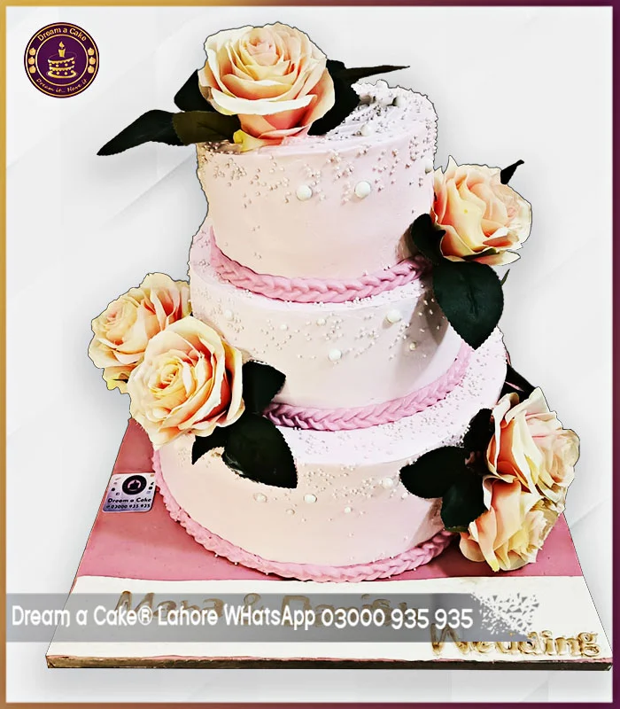 Immerse yourself in the ethereal beauty of our Peony Perfection Cake, specially made by Dream a Cake Lahore. This three-tier wonder combines the grace of peonies with the taste of perfection, creating a truly memorable wedding cake.If You are unable find to your desired weight etc. you can order any weight, size, shape, weight and flavour by filling the Custom Order Inquiry Form.